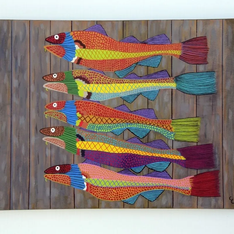 NERRL Hand Painted Designs is a whimsical, very colorful art business. If you need color in your life – we have it! We cater to all your home and gift ideas with a Newfoundland outport flare, Boats, Whales, Mermaids, Icebergs and our Crooked Stages (copyrighted designed fishing stages) and the excitement continues in to the many well known icons of the province such as Jelly Bean Row Houses of St. John’s, NL., Mummers and Puffins, the official bird of Newfoundland; most paintings have outport life utmost in mind. Available for Commission work. Artwork is painted on Canvas, Glass, Slate, Rock and Wood.