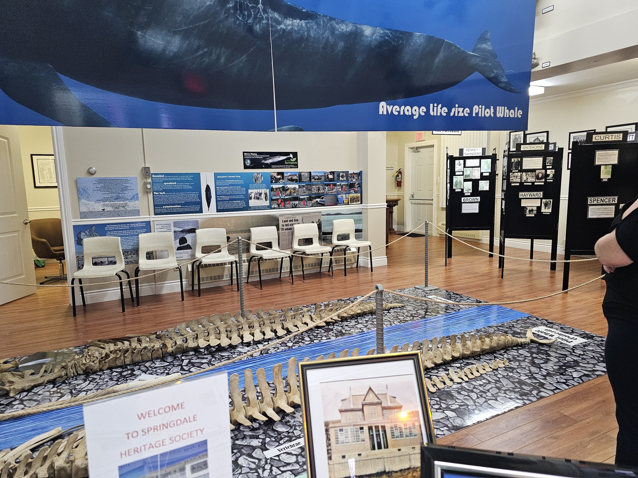 The Springdale Heritage Centre is also home to an impressive pilot whale on display — a striking highlight of the Centre’s natural history collection. This remarkable exhibit offers visitors a close-up look at one of the North Atlantic’s most recognizable marine mammals, providing insight into the rich marine life surrounding Newfoundland and Labrador.