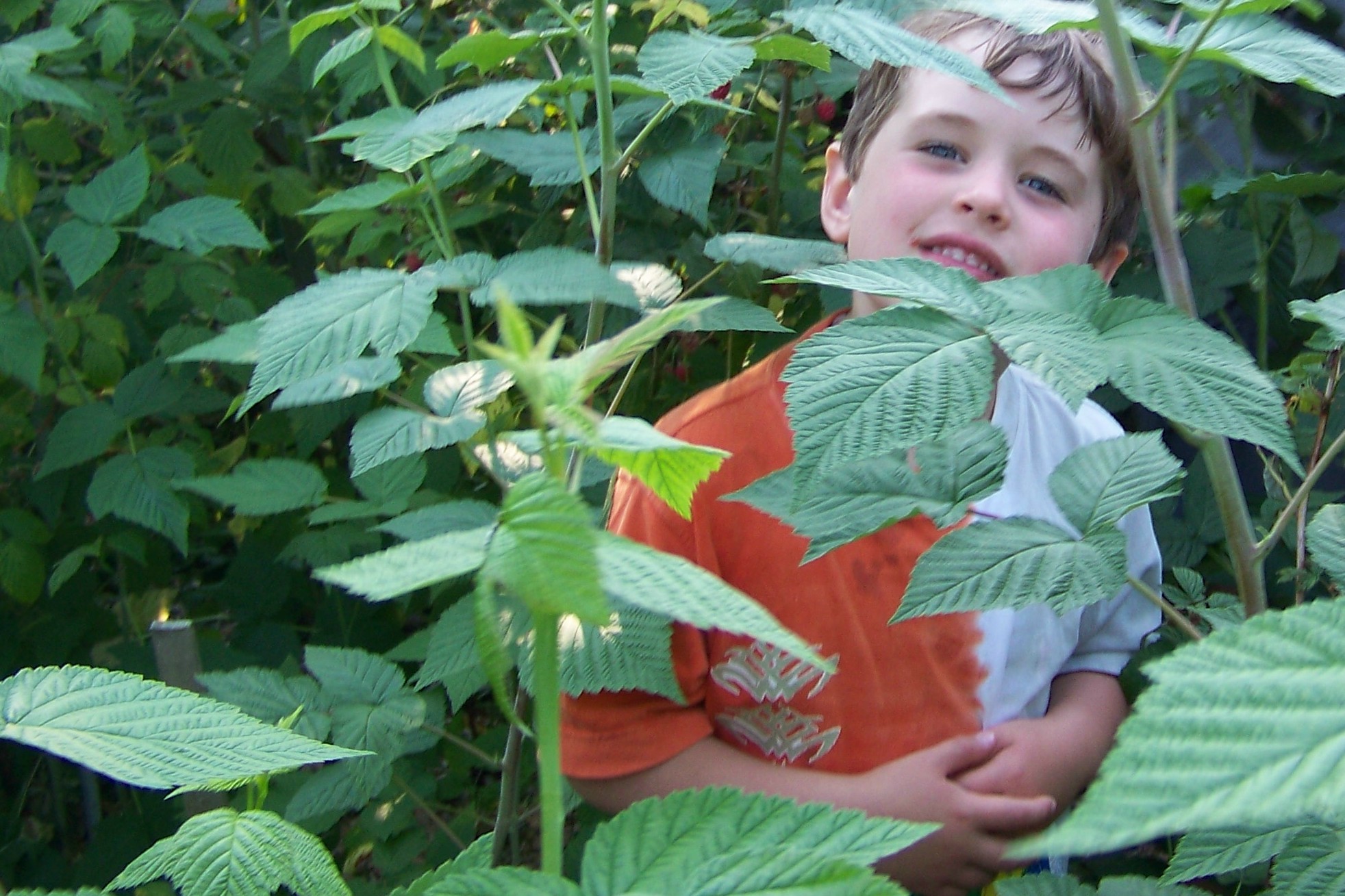 My Grandson Aaron in the Raspberry Patch