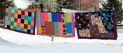 Some of the quilts in our house were very thick; others were lightweight. The latter, summer quilts, had a cotton or flour-sack backing and patches were sewn on just one side. The heavier ones had patches sewn to both sides of the backing (often a worn-out flannelette sheet) and some had patches sewn on patches! If they had big pieces of material to work with, they used big pieces; they did not have time to indulge in a make-work program and would not cut their material into tiny pieces on purpose. They made use of everything available. Mary Jane once made a quilt using discarded drapes on the top side! Washing such a quilt was very difficult and wringing it out required two sets of hands. It was too heavy to hang on the clothesline, so it had to be hung on the backyard fence to dry.